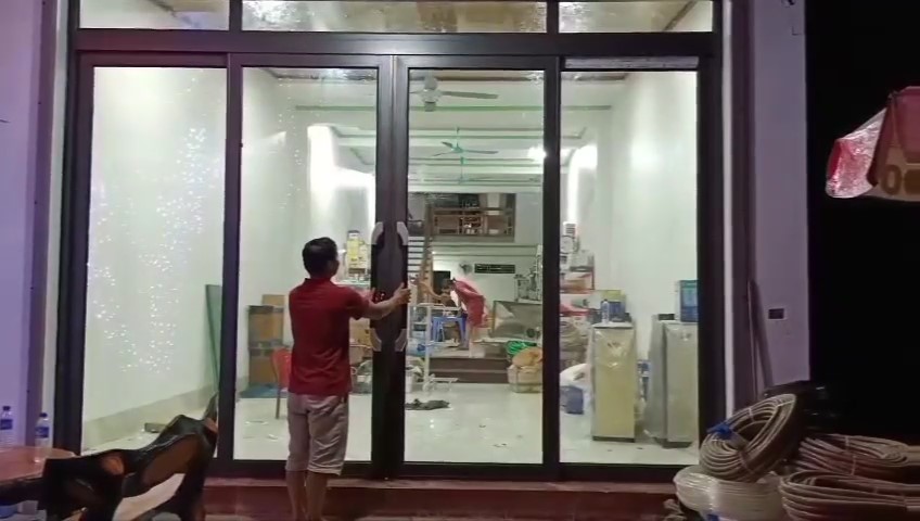 - Lắp đặt cửa trượt quay 4 cánh cho cửa chính rất tiện lợi, cửa không vướng ray trượt và có thể mở 100% diện tích cửa.